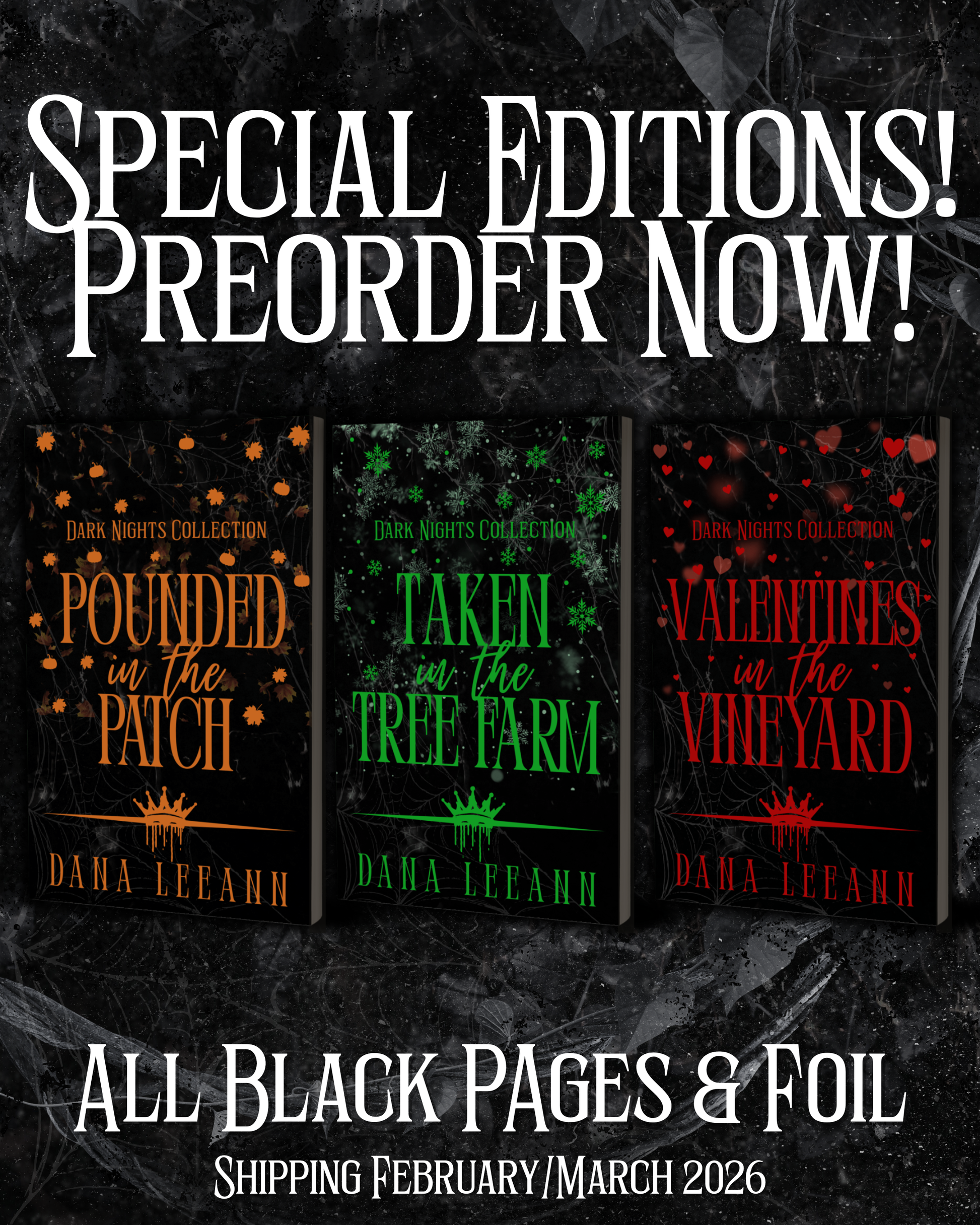 Three foiled special edition paperbacks. All black pages with white text. Each book comes with a matching bookmark! SHIPPING FEBRAUARY/MARCH 2026.